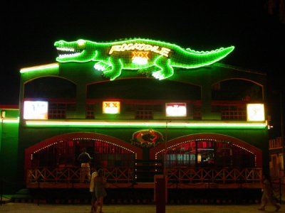 It wasn’t much of a wait to get across the border into Mexicali and we were soon following the signs to San Felipe. Just a word of warning, the signage isn’t often clear and is sometimes flat wrong. At one point there was a San Felipe sign pointing to the right that we foolishly followed. After a minute or two of heading West, we figured it had to be wrong and flipped a u-turn and quickly got back on track. Charlie had his portable GPS…nice to have a modern day bread crumb trail to make sure you can find your way home. We decided to stay on the main road heading South regardless of what the signs told us to do. This worked good for us ‘til we got to the road construction which routed us back West for a little ways. We got to the first place to make a u-turn to get us back on track. The oncoming traffic was turning left in front of us. Unsure of what the driving rules, we decided to rely on the policia parked across the street who motioned to us to make the turn. Seconds later we had another police car trying to pull us over. Charlie, in his best Spanish and Sign Language, told them “Policia waved us through” while making u-turn motions with hands. Surprisingly this worked and the police sped off to hassle some other Gringos. Though we escaped the Mexicali Blues, this would not be our last run-in with the policia on this trip. We were happy to be on the open road and away from town. The speed limits were painfully slow, between 40-80kph. With our earlier near miss, we initially tried to keep our speeds down, but they gradually creeped up as we headed South. It would have been nice scenery if it weren’t for all the trash, broken glass, tires, and upside down rusted cars along the road. Our original plan was to camp on the beach the whole trip, but since the daylight hours were fading as we rolled into San Felipe, we opted for getting a motel room. El Capitan ended up being our casa for the first two nights. Though in retrospect, we probably should have just camped on the beach. The room was decent, a small place to crash, shower, drink, talk, and avoid the policia. We unpacked some of the stuff from the truck and had a couple Coronas that I had brought along for a starter before hitting the streets of San Felipe. The main drag, Malecon, is along the beach, one block over from our motel. Even though it was a Thursday night, we were a bit surprised at just how dead the town was. We walked a few blocks to the end of the strip. Deciding it was time for a shot of tequila, we went into Rice & Beans and ordered our shot. Being that I have studied tequila more than Charlie or Mark, I asked (okay insisted) that I get to choose the tequila. After a moment’s disappointment that they didn’t have Patron, we opted for a nice shot of Don Julio. The guy was really nice and told us to come back for breakfast in the morning. We asked how late they served breakfast. He said Noon, but he’d make us breakfast later if we wanted. We figured it was a good idea to get some food in us before we got too serious about drinking and started walking back down the strip. Tony’s Restaurant had caught my eye on the way up. We went to the open air upstairs seating over looking the street and ocean. We scored our first tacos (fish for me, asada for Mark and Charlie) and some Pacificos. I had many fish tacos on this trip, but I liked Tony’s the best. The atmosphere and service were also the best we had. After dinner, we explored the town further – one road over. We stopped at La Ponderosa (aka Margarite Ville) and had a bucket of Pacificos while sitting at an outside table. The bartender was a young guy and spent most of his time talking to us. We asked him if things picked up on the weekend, which he assured us they did and recommended Christy’s across the street. Christy’s Piano Bar definitely seemed to be the only place in town that night with any activity, though there was no piano to be found. We had a pretty fun time drinking there and talking to the locals. Charlie did his best to teach the bartender to make a lemon drop shooter, which ended up being a lime drop shooter. It was pretty bad. The vodka that came out of the Absolut bottle surely wasn’t, and I didn’t much care for granules of azucar. One of the local girls thought it was macho, though I felt it a bit too foofoo for my taste and stuck with Pacificos the rest of the night. We headed back to our room. Mark seemed happy to find out that I had brought some Captain Morgan Private Stock with me. Mark had brought some snacks for us. I have to admit that I was a bit surprised by his choice of green-filled Shrek Twinkies. Though after hearing he had Sponge Bob cereal for breakfast, maybe I shouldn’t have been surprised. Mind you, Mark is 35 years old with no kids. I figured if he imported them from Phoenix, I would at least try one, probably my first Twinkie in a decade, and it was pretty much as bad as I remembered. We then proceeded, for I’m not sure how many hours, to talk politics and philosophize as only one can do after so much alcohol. I’m not sure how many of the world’s problems we solved before decided to go for a walk around town. Before we left we had a discussion about whether we could carry alcohol with us on this walkabout. I’m not quite sure how, but Charlie and Mark had come to the conclusion that it was only glass that was illegal, but in a cup it would be okay. I was personally thinking that at 2am, you could probably do whatever you want. MAN, were we wrong!! I’d say we got about 12 steps from our motel before we were stopped by the policia. Mark had a plastic cup with about an ounce of rum in it. After a bit of discussion and trying to convince them of our logic, they told us that it was illegal on this side of the street, though across the street on the beach side was okay. It quickly became apparent that they just wanted some money to leave us alone, though they didn’t say it for a long time. They