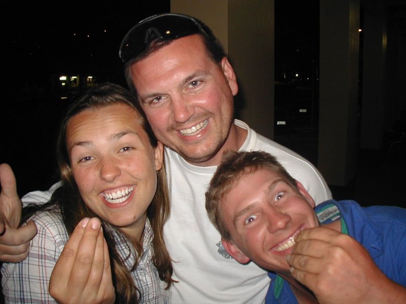 7:30am Breakfast(Eggs, Bacon, Toast). No tent to pack...Yea! Long ride til lunch(9am-2pm)...No soreness, but a bit tired by lunch. Burritos and rest for lunch. Well rejuvinated and only 3 hours back to the stockyard. It was a nice ride out...and we even spotted two wedgetail eagles flying above us. Not that it was a race, but Georgie and I were the first two riders back to the stable! Not bad for a couple of beginners. We rinsed the horses off and put away our gear. Had a little unwind, showered, etc. I exchanged info with Neil & Courtney, because we were planning on meeting up with them in Melbourne to make some Margaritas. Georgie informed me that the rear door on the van was broken and wouldn't close. I inspected it and saw that a spring had broken and the handle would no longer work. I was able to get the door closed manually, but that would be the last time that door was opened on our trip. We headed back to town and got some sandwhiches for dinner. Cora had invited us to join the staff at the pub that evening and we had been debating whether or not to go to the pub or to drive half way to Sydney(about 650K). We decided to drive on and were on our way out of town and were waved down by Pete & Sam who were sitting at a table outside the pub. We thought it would be rude to just leave, so we thought we'd go in for one drink. Well, we closed the bar and didn't make it any closer to Sydney, but it was a REALLY fun night!!! Sam, Pete, Anna, Cora, Sarah, Georgie, and I had a great time...drinking, playing pool, music on the jukebox, dancing, goofing off, etc. At last call, we ordered two rounds...they turned off the jukebox on us three times(but we kept turning it back on). And finally we left. I thought Georgie and I were were going to walk across the street to the camper van and sleep. Next thing I knew Cora was driving us back to Sam, Pete, & Anna's place in the country. I felt a little bad for Cora, because I know it's not that fun to be the most sober person among a bunch of drunk people. A couple people got out at the house and Cora drove us to where the food was and dropped us off. We picked up some food and Sam gave us a wild ride back to the house...I wasn't too worried as there wasn't anything to crash into out there. We had some food and Georgie and I slept on the couches. What a FUN night!!! |