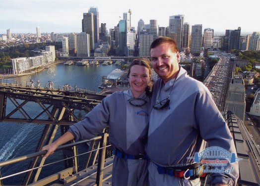 We slept in a bit. Booked another night in the Hostel and Car Park. Headed back to the Harbour and had lunch at Rossini's...a fast-foodish Italian place. Then we had our Jet-Boat Ride. It was the BEST! 75KPH and doing 180s and jumping wakes in the harbour. We sat in the back so we could really feel the spins. We took a ferry to the other side and walked to the bridge for the climb The prep for the climb was pretty full on. First you have to wear gray jumpsuits so you don't distract the traffic. You can't take anything with you except your glasses which have to be attached to a lanyard through a hoop on the back of the jumpsuit...so nothing falls into traffic. We got safety belts that attach to a track along the bridge climb. And we got radios so we can hear the guide is saying. We get a full safety lecture and they even have a practice bridge section to go through before the actual climb. Oh yeah, and we had to take a breathalyzer test. Our guide, Tracey, was great...fun and full of information and facts about the bridge and city. The climb was great...especially for a height junky like me. The peak was 134M and the views were excellent! Once back, and changed...we go to the picture room. They take your picture 5 times along the climb. You get a free group shot and certificate and can buy the others for a hefty fee. I at least wanted to see them, but their printers went offline and they were very backed up. Georgie was wanting to leave, but since we posed I at least wanted to see them. Because it took them so long, they offered us whatever we wanted for free. We ended up getting what would have cost $130AUD for free, so it was definitely worth the wait. We were meeting up with Brooke, a friend of Georgie's. She knew a band who was playing, Johns Myth @ The Metro. So we headed over and met up with her and watched the band. Again, we were fairly underdressed and a bit dirty from our day's activities, so we hopped the train back to the hostel and cleaned up a bit and rushed back. The second band, "Flee the Capital" was just about over, but we had a drink and talked to Brooke and the members of Johns Myth. We decided to walk back to the hostel. Georgie couldn't believe when we past one corner and there were about a dozen hookers standing there...and I was glad she was with me so they left me alone. |