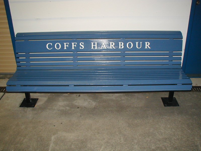 I woke up first at 7:30am. Georgie had the van key last, so I waited for her to wake up at 8am. She didn't have it, and we searched for 2 hours til Brooke & Pip got up. No one can find it anywhere. DOH! It was in Georgie's vest pocket. My fault, I was keeper of the key. We looked at the pictures I took the day before and some of Pip & Brooke in an album. Then we said our "SeeYa Laters". I was a bit sad to be leaving my new mates so soon, we had a such a great time together and they are wonderful people. Georgie dropped me off at the train station. I felt a bit bad that she had to drive all the way back to Melbourne by herself. My train kept getting delayed, but I didn't mind as I was writing postcards. The train got there over 2 hours late. So I got into Coff's Harbour after 11pm. I wasn't worried til I found out the town shut down completely at 10pm. I walked from one end of town to the other. It was a touristy little beach town and there are a ton of motels, but they were all closed for the night. I found a couple that had night bells, but no one answered. I didn't see a single pedestrian and only a couple of cars that weren't willing to stop. By the time I got back to the train station I was pretty tired from walking and sleepy, so I slept for about an hour on the train station floor. It was pretty uncomfortable. I got up and went for a little walk around outside. When I got back the doors were locked. I walked down to the beach and out to the end of the pier. As soon as I reached the end, a form appeared in the water. At first it looked like a shark, but soon I saw the horizontal tail fin and knew it was a dolphin. After a few seconds, he surfaced and said hello, swirling around in the water for a few minutes before swimming off into the darkness. I was fairly exhausted and walked back to the train station and slept on an outside bench(see below) from 4-5am. Then it finally got a little too cool for shorts and a T-Shirt. I was travelling light and had the bare minimum in my small backpack. I walked around til sunrise. People started to wake up, but nothing was open yet. |