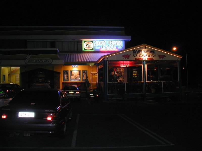 | A little after 7am, I noticed the Foreshores Cafe was setting up. I'd seen their sign earlier that they opened at 7:30. I walked that direction and they invited me in. I ordered at 7:15am and was eating at 7:30. Things were picking up. CountryLink opened around the corner at 8am. During the night, I had decided not to head to Byron Bay(I was sheduled to arrive 10pm) and I liked the idea of getting closer to Melbourne instead of further away. So I changed my ticket to catch the train back to Sydney the next morning. I also booked a 4 star hotel for both my nights there and I booked a day trip to the Blue Mountains...something I wanted to do, but didn't think I'd have a chance to do this trip. I then walked across the street to the Caribbean Motel. The guy was really nice and let me check in early, at 9am...yea! I had a shower and debated on immediate sleep or a walk to the shops across the street. I knew if I slept, they might be closed by the time I woke up. I had done some window shopping the night before and wanted to check out a couple of them. First I went to the art store that had mostly all beach, boat kinda art. I bought some nice hand-painted postcards. Then I went down a few stores to the Wahoo Surf Shop. I wanted to get a pair of shorts. I got a nice pair(I didn't even realize they were on sale). I also picked up a couple little souvenirs. I talked to the owner(Peter) for over an hour, and I was dead tired mind you. He was REALLY cool. We talked mostly about small town living and a bit about our travels around Australia. I decided I'd better eat in case every place was closed when I woke up. I got a burger and fries from a little deli, Donninni's, and then a few groceries. One last stop at the PO across the street from my hotel to get some more stamps. Then, FINALLY, Sleep. 5 VERY GOOD HOURS OF COMFORTABLE SLEEP...a slice of heaven! I would have probably went right back to sleep, but I was dying to try the Hog's Breath Cafe down the street. So I went and had a delicious prime rib dinner. I flipped on the TV back at the hotel and watched 1 1/2 episodes of South Park Reruns. Then I slept soundly til 6:30am. |