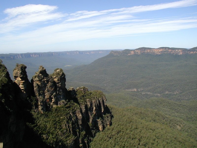 The bus picked me up at 8am for the tour of the Blue Mountains. It was a little hokey going on a tour bus, but it was convenient and the driver was fairly entertaining. Our first stop was the Bilbin Fruitbowl for a morning snack. Then onto Govett's leap for photo op. Then Katoomba and Echos point for a little hike around the Three Sisters and lunch. The scenery was AWESOME! Then a little further down we stopped for an opportunity to ride the scenic railway STRAIGHT down the hill and then back up the cable car, Sceniscender. On the way back to Sydney we stopped at the Featherdale Wildlife Park for an hour. Just time for a quick look at the animals. It was pretty cool, because they had lots of 'roos and wallabies hopping around as you walked around. We also cruised through Homebush bay where the olympics were held. I had the bus drop me off at Darling Harbour instead of my hotel. I got some delicious fish & chips from the Blue Fish Cafe. Walked around the harbour a bit and then back to my hotel. |
